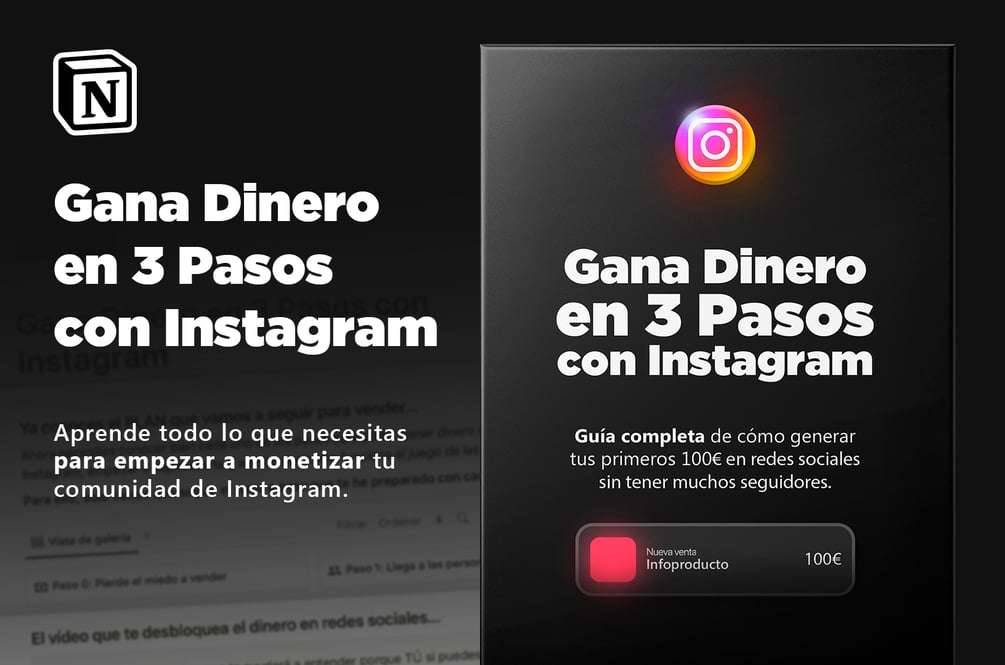Una plantilla de Notion con los 3 Pasos que debes seguir para empezar a generar ingresos con tu comunidad de Instagram.